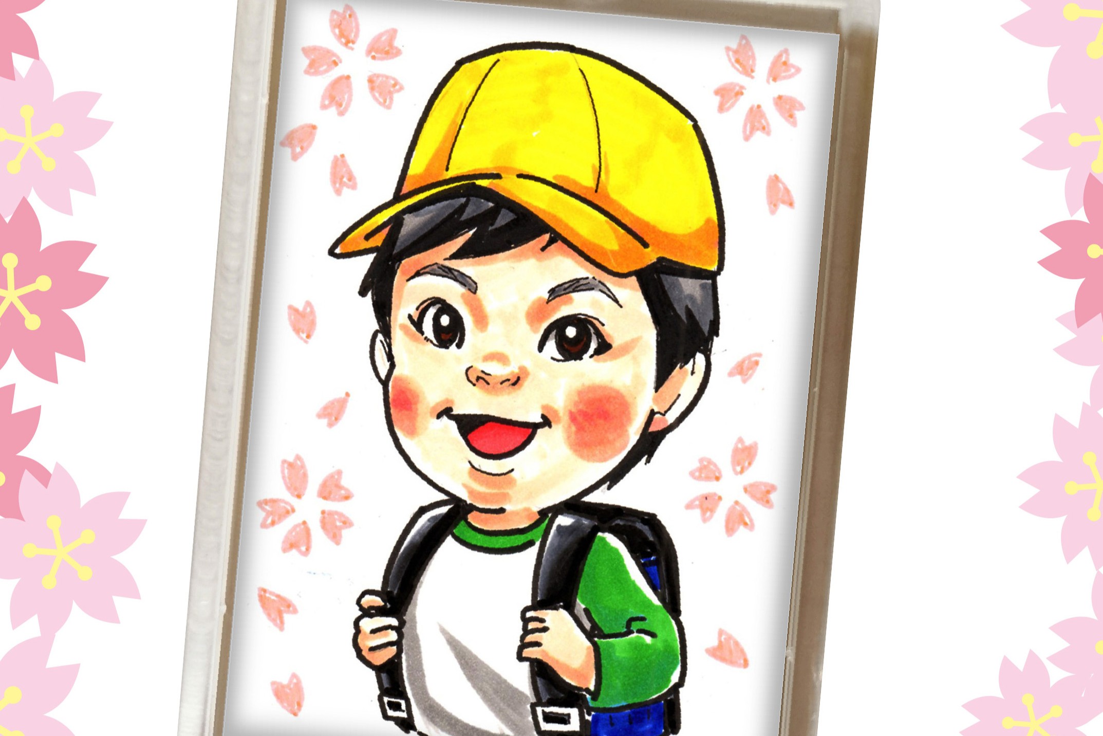 カードサイズの似顔絵をキーホルダーにして進呈します。