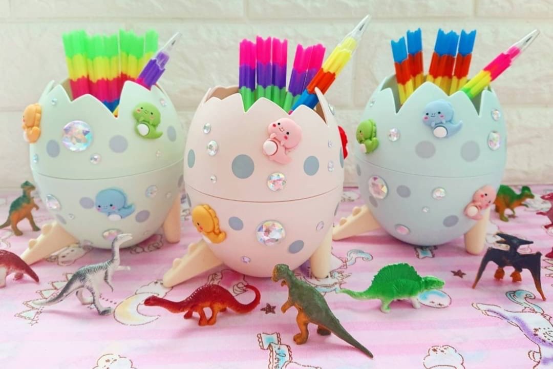 恐竜たまごのデコペンホルダーづくり