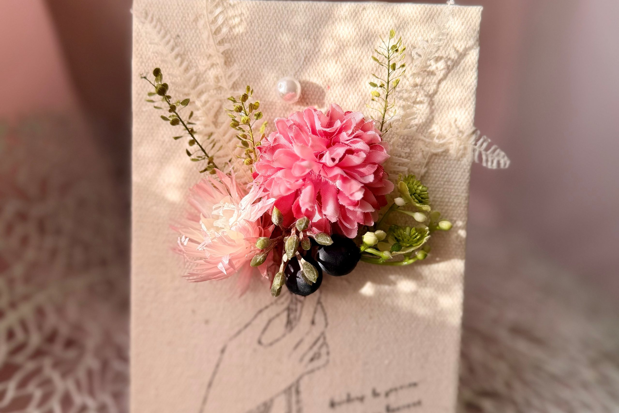 手描きの絵に本物のお花を添えて華やかな彩りに!