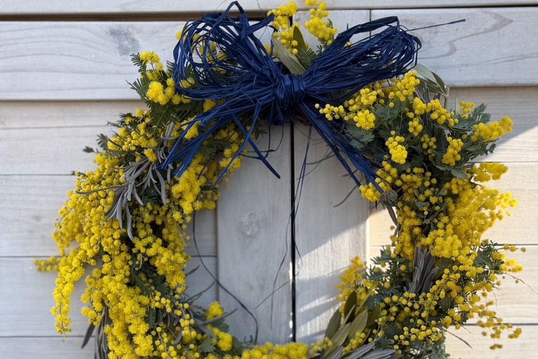 フレッシュミモザを使ったリースづくり