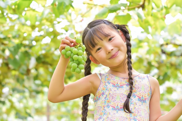 お子様収穫体験シャインマスカット狩り♪
