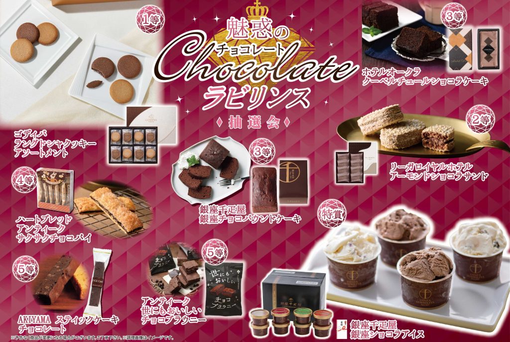有名店のチョコレートが抽選で当たるチャンス!開催予定日:・2月7日(土)・8日(日)・11日(水・祝)・14日(土)・15日(日)